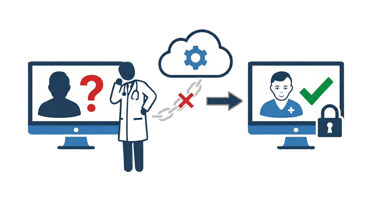 Поликлинику объединили с другой или клиника сменила юрлицо (ИНН). Ваши кадровые данные "потерялись" при переносе баз, и система вас не видит.
